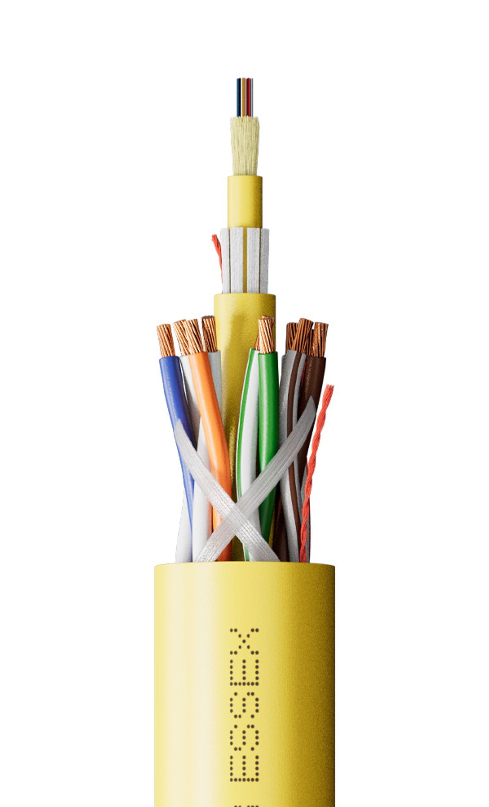 Combines the carrying capability of stranded copper twisted pairs with the unlimited data capacity of optical fiber in a single cable.